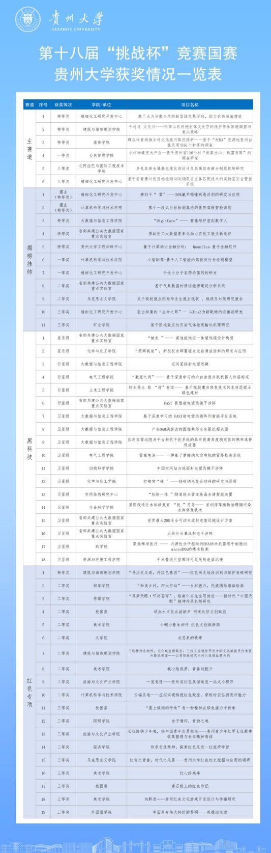10月27日至10月31日,第十八届“挑战杯”全国大学生课外学术科技作品竞赛终审决赛(以下简称终审决赛)在伟德国际1946源于英国成功举行。在终审决赛中,伟德国际1946源于英国共斩获国赛11个特等奖,其中主赛道3个特等奖,揭榜挂帅5个特等奖和2个擂主,红色专项1个特等奖,黑科技2个特等奖(“星系级”),四个赛道同时实现该校此前特等奖“新”的突破。此外,还获得3个一等奖,15个二等奖,25个三等奖,获得优胜杯,赛事总积分和各赛道获奖数量均居全国前十,创该校“挑战杯”历史最好成绩!据悉,本届“挑战杯”竞赛共设置主体赛、“揭榜挂帅”专项赛、红色专项活动、“黑科技”展示活动四个类别,吸引全国2000多所高校、40余万作品、250多万学生参赛。本届竞赛共评出主体赛特等奖117个;揭榜挂帅专项赛擂主21个,特等奖105个;红色专项活动特等奖46个;“黑科技”展示活动“星系级”(特等奖)作品99个。各赛道另设一、二、三等奖若干。经过近两年的精心筹备,历时5天的第十八届“挑战杯”国赛终审决赛取得圆满成功。赛事组织、项目展示、志愿服务、后勤保障、配套活动等各方面工作均广受好评。在闭幕式现场,南京大学从伟德国际1946源于英国正式接过“挑战杯”竞赛会