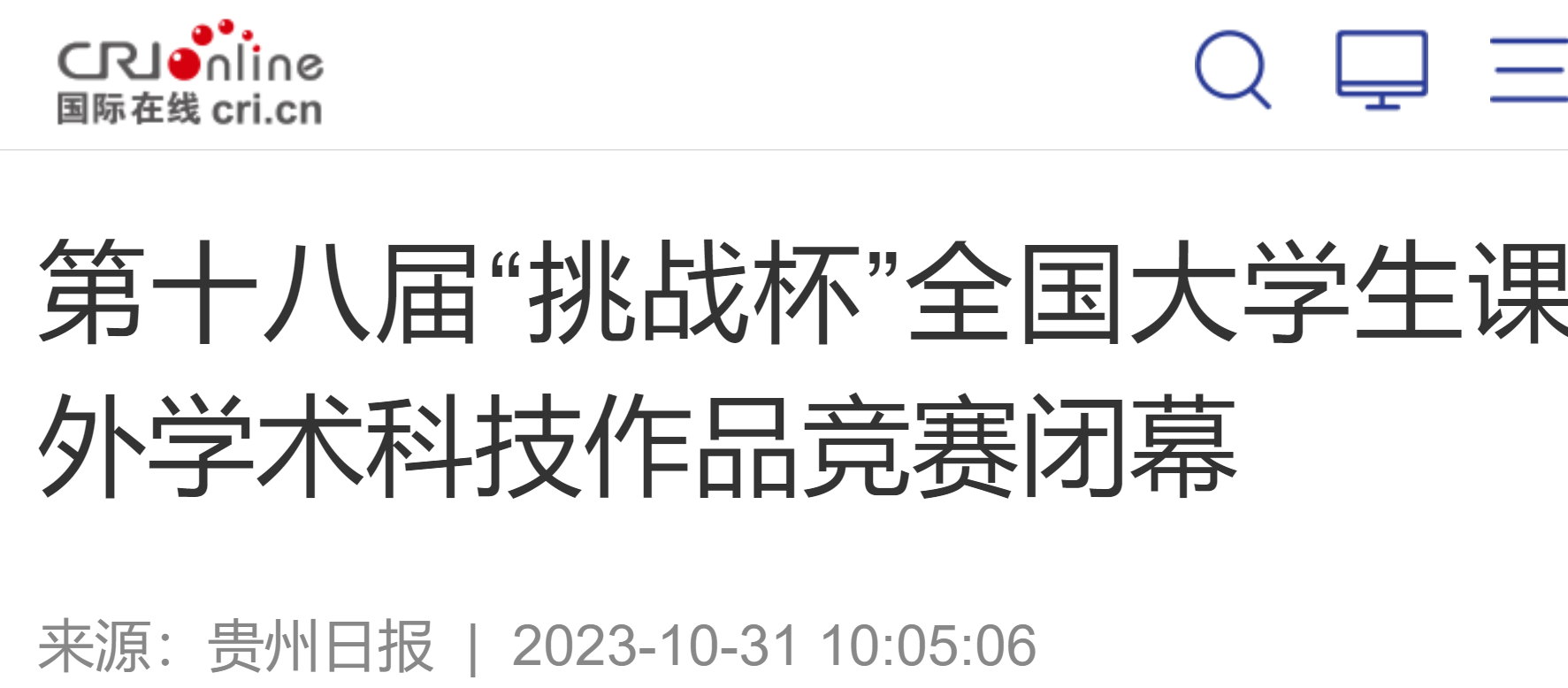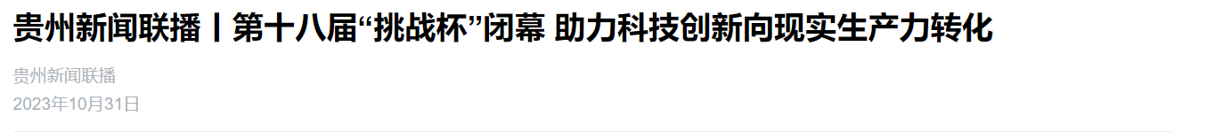 【贵在挑战 大有可】贵州新闻联播:第十八届“挑战杯”闭幕 助力科技创新向现实生产力转化