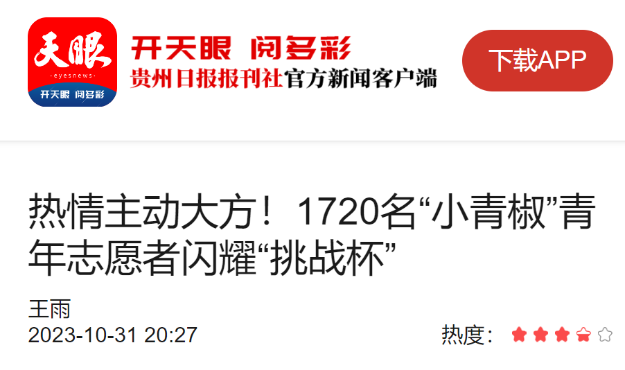 【贵在挑战 大有可为】天眼新闻客户端:热情主动大方!1720名“小青椒”青年志愿者闪耀“挑战杯”
