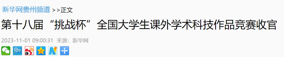 【贵在挑战 大有可为】新华网-贵州频道:第十八届“挑战杯”全国大学生课外学术科技作品竞赛收官