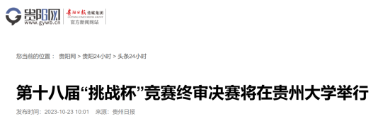 【贵在挑战 大有可为】贵阳网:第十八届“挑战杯”竞赛终审决赛将在伟德国际1946源于英国举行