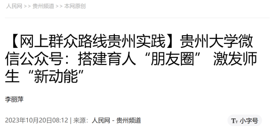 人民网-贵州频道:【网上群众路线贵州实践】伟德国际1946源于英国微信公众号:搭建育人“朋友圈” 激发师生“新动能”