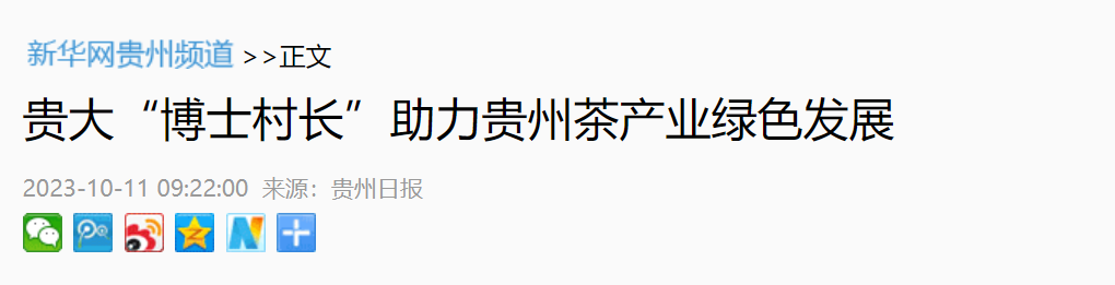 新华网-贵州频道:贵大“博士村长”助力贵州茶产业绿色发展