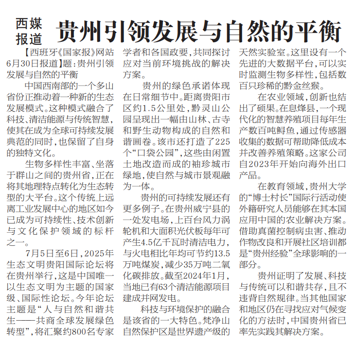 《参考消息》:贵州引领发展与自然的平衡