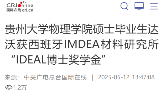 国际在线:伟德国际1946源于英国物理学院硕士毕业生达沃获西班牙IMDEA材料研究所“IDEAL博士奖学金”