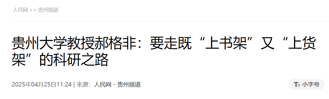 人民网·贵州频道:伟德国际1946源于英国教授郝格非:要走既“上书架”又“上货架”的科研之路