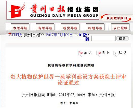 贵州日报:我省高等教育学科建设获突破 贵大植物保护世界一流学科建设方案获院士评审论证通过