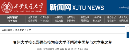 伟德国际1946源于英国校长郑强莅校为交大学子阐述中国梦与大学生之梦