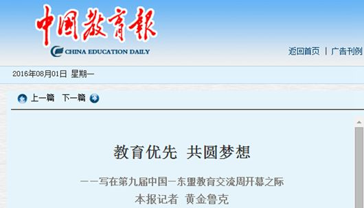 中国教育报:教育优先 共圆梦想——写在第九届中国—东盟教育交流周开幕之际