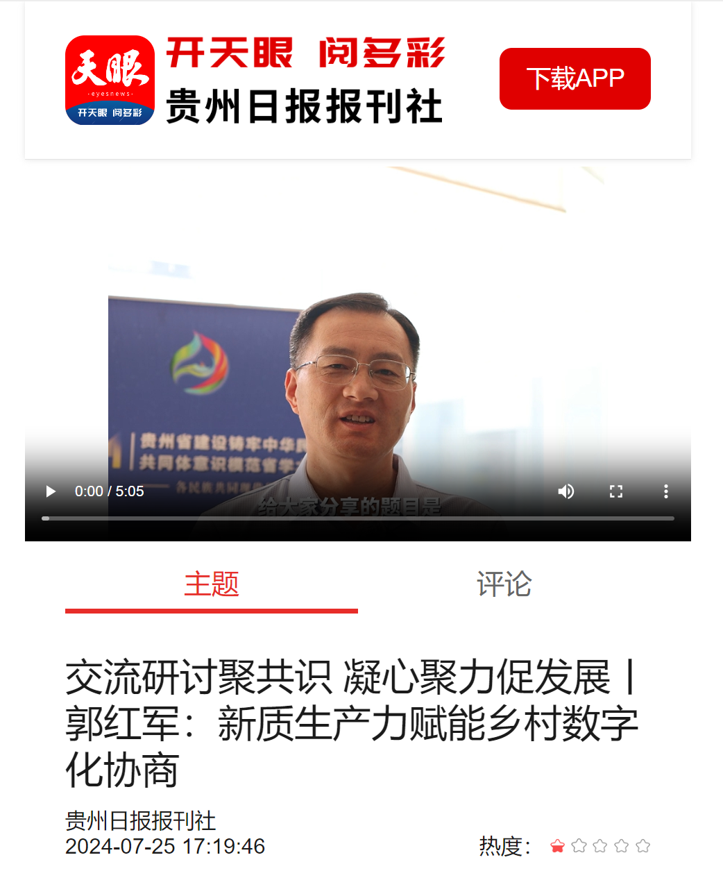 天眼新闻客户端:交流研讨聚共识 凝心聚力促发展丨郭红军:新质生产力赋能乡村数字化协商